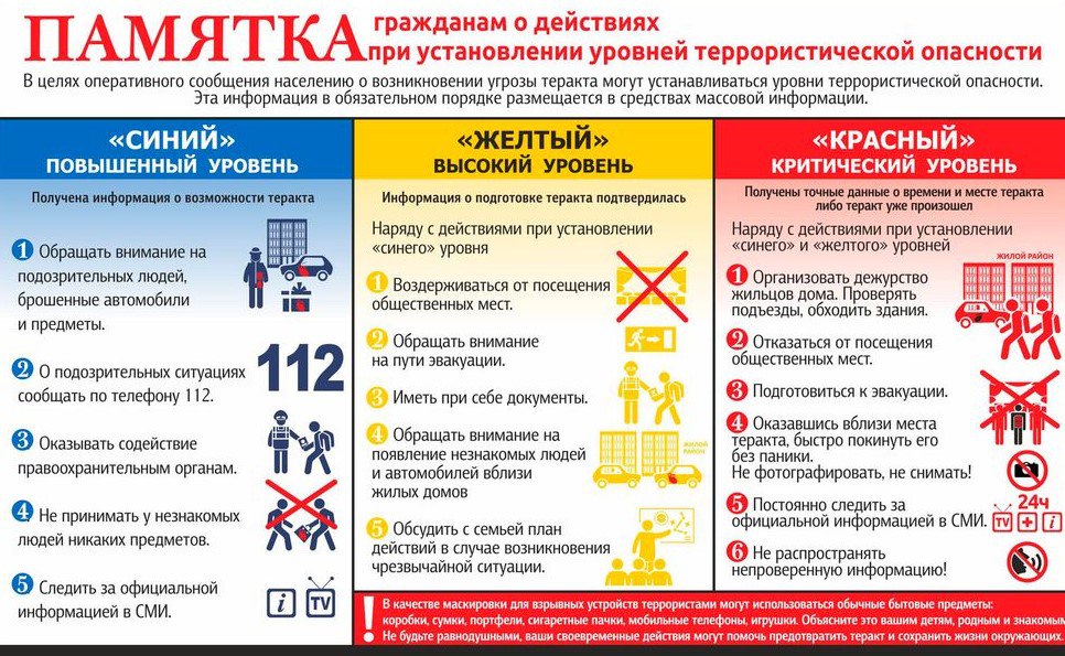 Следите за официальной информацией: Узнавайте об установлении уровней террористической опасности из официальных источников.